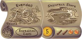 The Distant Shore: Place this card at the end of your Expedition so it will be the last area you will explore. You must discard 6 cards to travel onto The Distant Shore.
