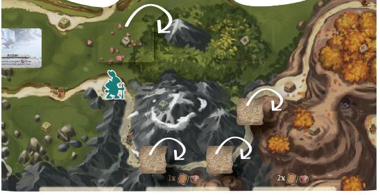 Other map tiles you gain will then be placed to the right of that map tile. Each player will gain a total of 3 map tiles over the course of the game. This forms the Expedition that your Traveler may embark on at the very end of the game.