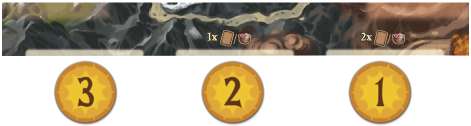 Place these 3 cards faceup along the bottom of the Mountain board, beneath the cost markers on the board as shown below: