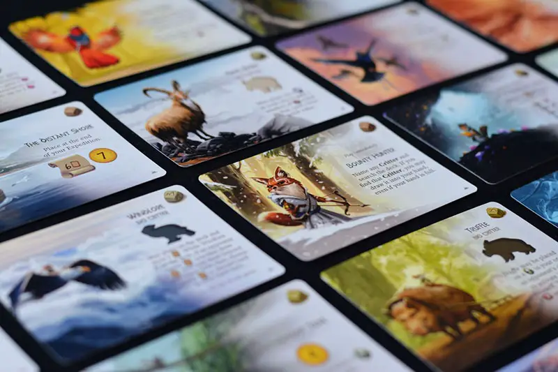 Trails and Cities: Trails will challenge you to fulfill certain requirements in order to gain their endgame points. Cities, which are only found in the Ridge deck, will gain you endgame points based on card types that are not in your city.