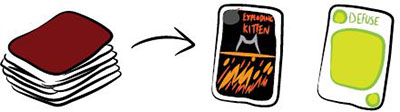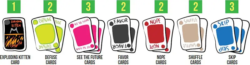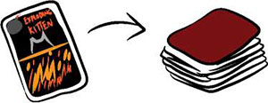 Remove the Exploding Kitten and 1 Defuse Card and set them aside.