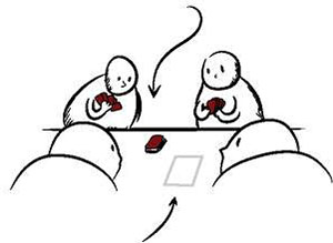 Pick a target player. That player must immediately make their cards blind by putting them face down on the table and shuffling them.
