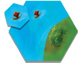 Players will need to move their Longships to transport Vikings and Livestock among the Islands. As 1 action, players may move their Longship to a connected sea space on an adjacent Tile.
