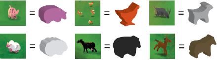 There are 6 different Livestock types in varying quantities: 6 Pigs, 5 Chickens, 5 Goats, 4 Sheep, 3 Cattle and 3 Horses.