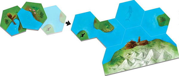 When placing a Tile, players will also need to place 1 Livestock, Settlement Token, or Enemy Ship. Each Tile has an illustration indicating what should be placed.