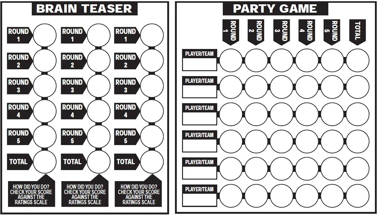 When the timer runs out, count how many Game Tiles you have correctly placed on the board, and record this number on your Scoresheet (in the circle beside ROUND 1 in the Brain Teaser section).