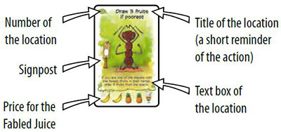 When moving to a new location, instead of using its action you can buy the available fabled juice. You must pay the fruits as shown on the bottom line of the location.