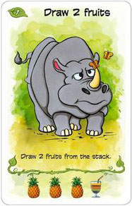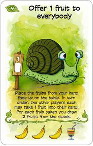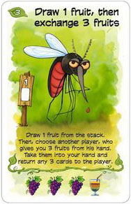 Draw 1 fruit from the stack. Then, choose another player, who gives you 3 fruits from his hand. Take them into your hand and return any 3 cards to the player.