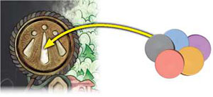 Each player secretly looks at his or her card without showing it to any other player; the front of the card shows that player's influence color and spirit.