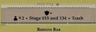 When a quest is completed, it can have several effects on the game. These effects are listed in a shorthand shown in a results bar under a given objective on the card.