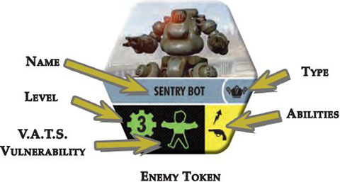 3 Sort Tokens: Create piles of the S.P.E.C.I.A.L., Caps, trait, and enemy tokens, making sure the S.P.E.C.I.A.L. and enemy tokens are facedown and randomized; the enemy tokens should be further separated into individual stacks by type.