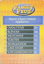 Each new card in play will begin with a "Face Off" as on the Family Feud game show where a representative from each team shouts out the first answer he/she can think of upon hearing the Survey Question.