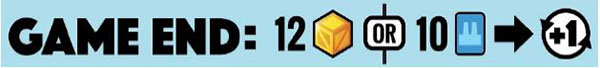 Once any player has manufactured 12 or more goods or has built 10 or more buildings in their compound, the game end is triggered.