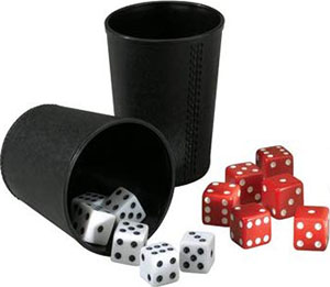 Put the Burgundy Dice in one Shaker Cup, and the Ivory Dice in the other.