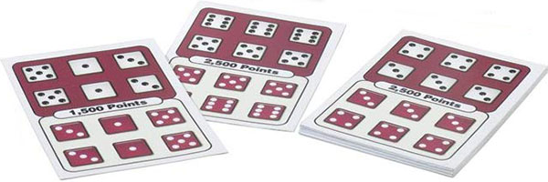 Once a player fills one side of the card and wins the points, the scorekeeper records them on their sheet of paper, and the Card goes to the bottom of the deck.