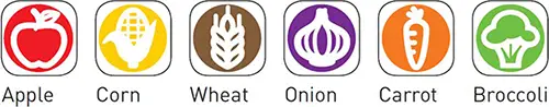 Each dice has 3 instructional symbols, 2 blank sides, and 1 crop.