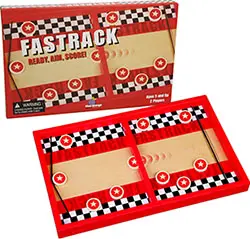 With Fastrack, the action is non-stop and the fun is plentiful. Using the elastic cord, be quick and aim well to be the first to send all of the disks zooming across to the other side.