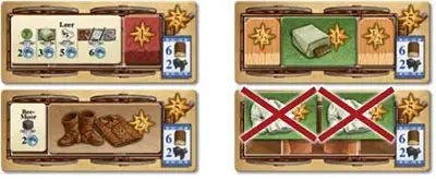 Spaces with a white/blue Frisian pattern on the Game Board indicate costs. You have to pay the depicted goods in order to