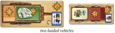 Place the Timber, Bricks, and Clothing from your Vehicles into your personal supply. Place the Travel Destination Tiles from your Vehicles on your Travel Experience Track (see below).