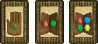 At the beginning of each round, each player takes a complete set of glass beads: 5 green, 4 red, 3 yellow, and 2 blue, placing them behind his screen to hide them from the other players.
