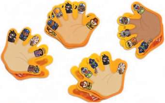 Find a match for each of the characters on the card in front of you before any other player. You have to match the characters, in order, from thumb to pinky.