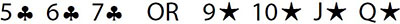 A run consists of a sequence of three or more consecutive cards of the same suit. For example: