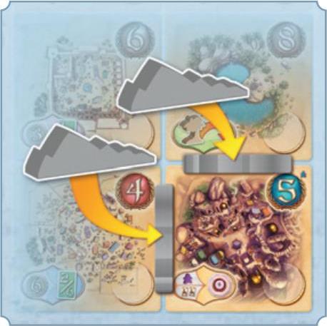 Tip: Because of the new mountains, orientation matters! Make sure you use the same orientation for all Tiles. Also, if a Tile is entirely surrounded by mountains, re- start the setup, as all Tiles must remain accessible.