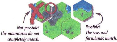 The landscape types (sea, mountain, farmland) must match on adjacent tiles.