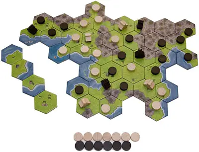 Then, follows land taking. Here, the players place (starting from their farms) their fields, in order to claim the largest possible part of the region. Each placed field earns the player one point. The player who has earned the most points after three rounds is the winner.