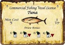 The Tuna license grants the player boat card draw bonuses in the Draw phase.