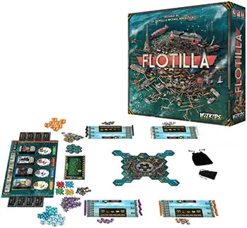 Flotilla features two distinct modes of gameplay-the Sinkside and the Skyside. All players begin the game as Sinksiders but may choose to "turn" Skyside at any time. When turning, you will flip many of your game components over, and fill a different role for the rest of the game!