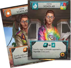 The Crew card you play each turn will be the source of a majority of your action in the game, and the way you sequence them can be very important. All players begin with the same six "Starter" Crew cards, but can recruit new Crew during the game.