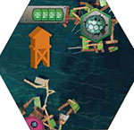 ) is indicated by the number in the compass rose icon on Sinkside cards, and determines how many spaces you may move your Skiffs on the open sea. (For details on moving your Skiffs, see page 16).Income value (
