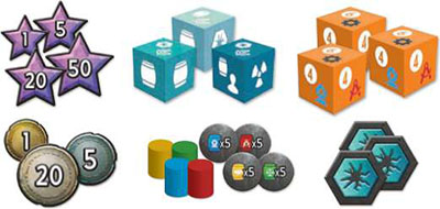 to form the Reserve, making sure that the two piles won't be accidentally mixed together.Establish a supply off to the side for all Dive dice, Research dice, resource barrels, Depletion tokens, and currency.