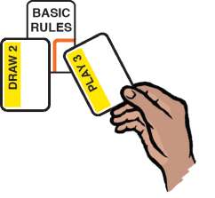 A: The New Rule still supersedes the Basic Rules, but the Basic Rules card does not get discarded. To help to avoid confusion, the New Rule can be placed to cover-up the portion of Basic Rules it replaces, as shown.