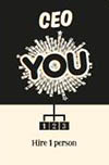 Employee cards: these cards depict a person. The text under the picture describes what that person can do in the company. Cards with a ► in the top left can be hired by recruiters.