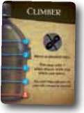 The Climber can move to blocked tiles (tiles with 2 or more Sand markers on them). He may also take one other player with him whenever he moves. Pawns on the Climber's tile are never buried and can leave the tile containing the Climber even if there are 2 or more Sand markers on it.