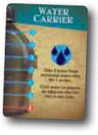 The Water Carrier can take 2 water from already excavated wells for 1 action. She may also give water to players on adjacent tiles for free at any time. The Water Carrier also starts with 5 (instead of 4) water.