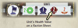 If the damage is lower than the health value of the chosen unit, that unit is routed. If the damage exceeds the health value of the chosen unit, any damage that exceeds the unit's health value must be applied to another friendly unit. The player repeats this process until either no more damage remains or no more units remain.