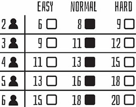 Shuffle the Encounter cards and deal them face-down in a winding path, starting from the Quest. You decide the shape! The length of your path is set according to the number of players and the desired difficulty (see table on opposite page).
