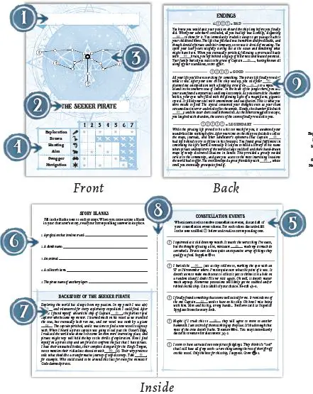 1Pirate Name2Title3Constellation4Skills5Constellation Events6Story Blanks7Character Backstory8Fold Line9End of Game Chart