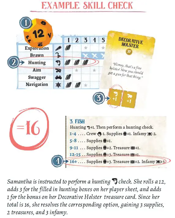 When determining who has the highest or lowest amount of a particular skill, count only boxes filled in on player sheets. Do not count skill gained from treasure or story cards.