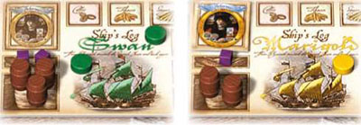 When a player rolls 1 or 2 at the Tavern he receives no Crew but is given the use of his 'Ghost Ship' Mission Disc for that voyage. When all the Mission Discs are turned over this ship vanishes and is removed from the board. By having an extra Disc to place the player can play last and see what Destinations the other players have chosen.