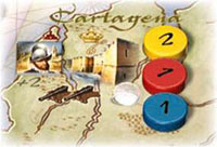 Note, Blue's 1 stays at Cartagena in case Red's 1 or Yellow's 1 is unable to attack. Regardless of the Sailing Order, any player who has the Golden Hind Disc will conduct the first mission, before any of the players' number 1 Discs.