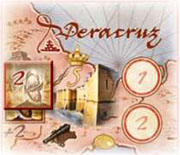 Example 9: To attack Veracruz in this case requires 4 grey cubes and 1 black cube. This scores 5VP for up to 2 players who attack here, but the first attacker will get the Gold.