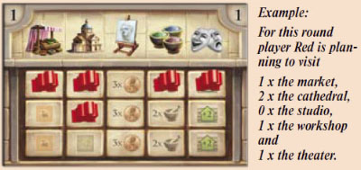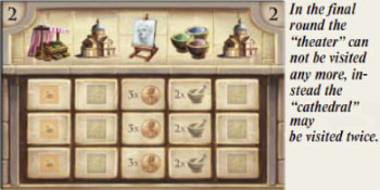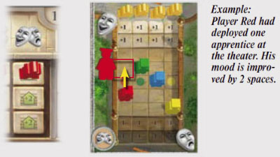 For each of their apprentices deployed at the "theater" column a player may move their master painter 2 spaces upwards on the mood display.