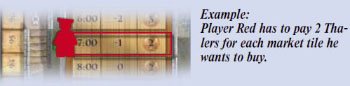 Depending on the get up time they choose, the column to the right shows the price a player has to pay at the market for 1 market tile.