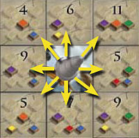 Take one of the 25 fresco tiles valued 11 and place it face up in the center space of the fresco. Shuffle the remaining tiles and randomly deal them out face up onto the segments of the fresco.