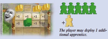 They may use this apprentice for 1 additional action (thus having a total of 6 actions) on their action sheet. A player keeps their extra apprentice until they are leaving the "+1" spaces.