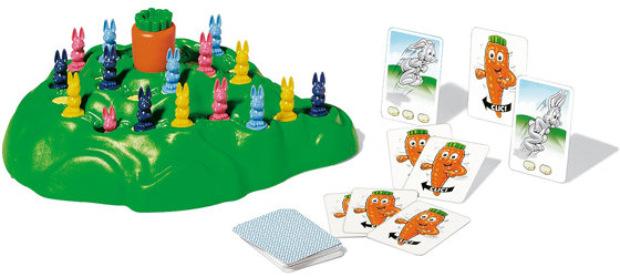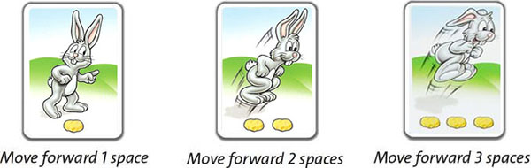 If you draw a card with a bunny on it, move one of your bunnies as many spaces up the hill as shown on the card.